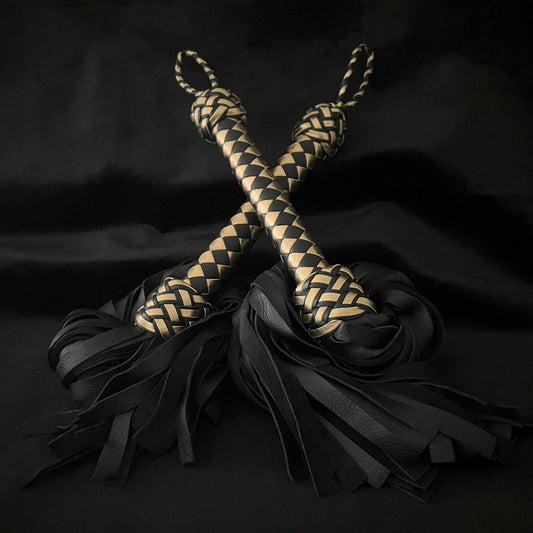 Medium Gold and Black Maestro Florentine Leather Flogger Set