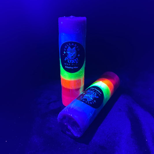 Rainbow Stripe UV Reactive Dripping Pillar Wax Play Candle